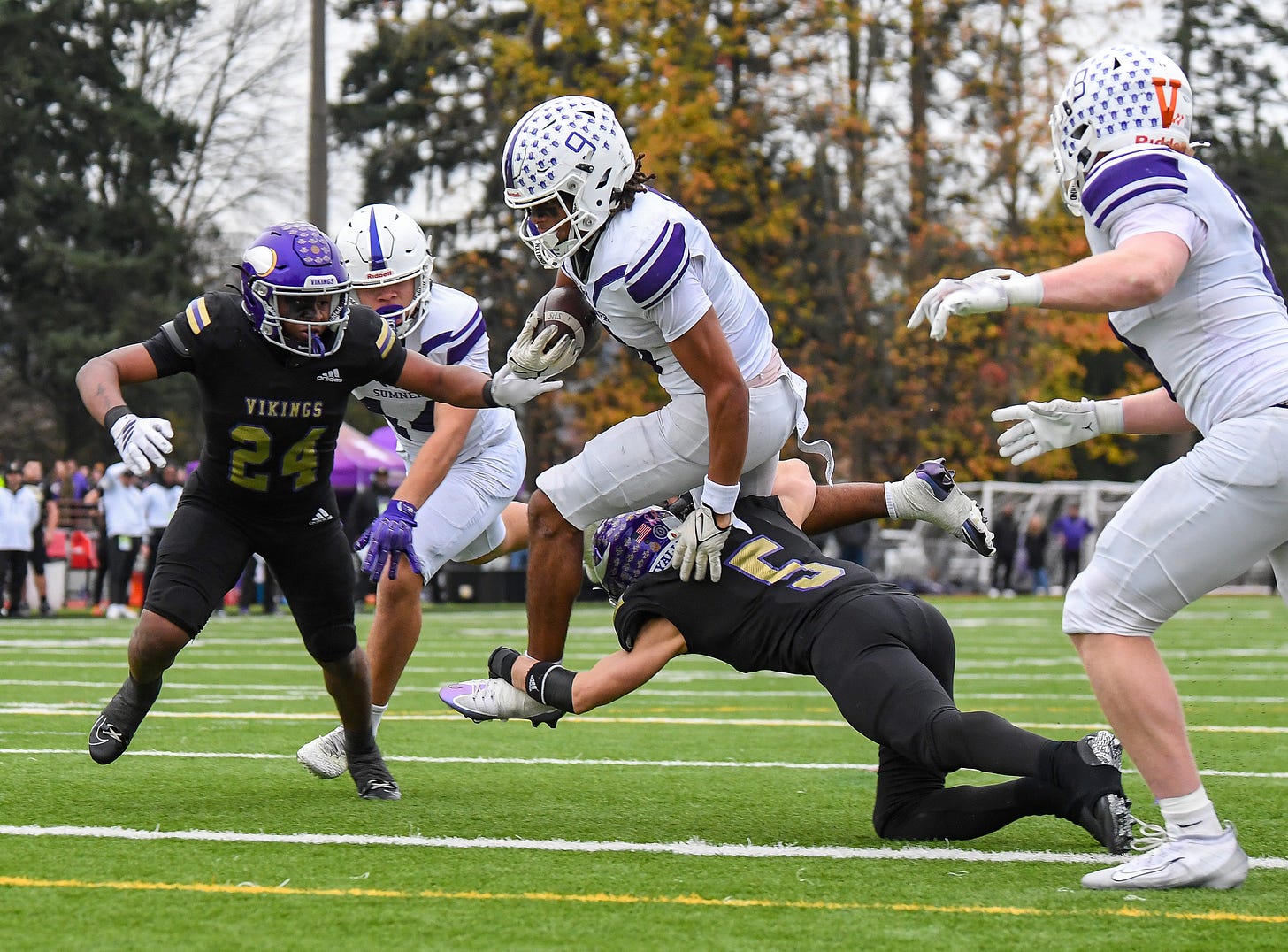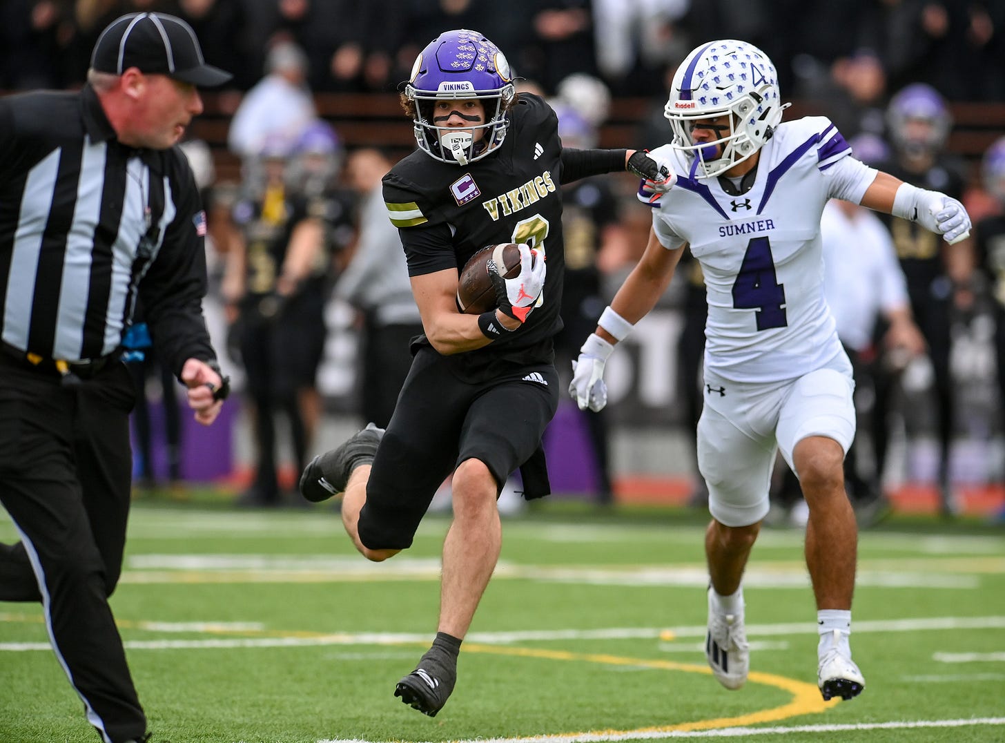 Sumner started with two quick scores, but Puyallup kept the score tight until near the end when Sumner had a two TD lead again with minutes to go. Puyallup did have a final score to reduce Sumner’s lead to one touchdown as time was running out.